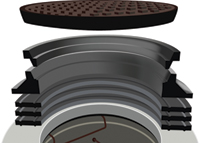 The Lifespan System is a watertight, corrosion-proof, non-conductive, locking, rubber manhole frame and cast-iron cover system that prevents rain-derived inflow from entering underground structures and sanitary sewer systems through the top of the manhole. The system has been tested to easily withstand 5 psi of water pressure, so it performs well in areas where heavy rains leave manhole covers under water. Lifespan has also been AASHTO H-25 load tested, making it perfectly suited for heavy traffic areas. Rehabilitation and installation crews like how easily they can handle the frame as it weighs only 55 lbs. The system’s tapered risers allow for a simple adjustment of the frame to match virtually any surface grade. The locking mechanism used by Lifespan deters unauthorized access and manhole cover theft. Booth #424