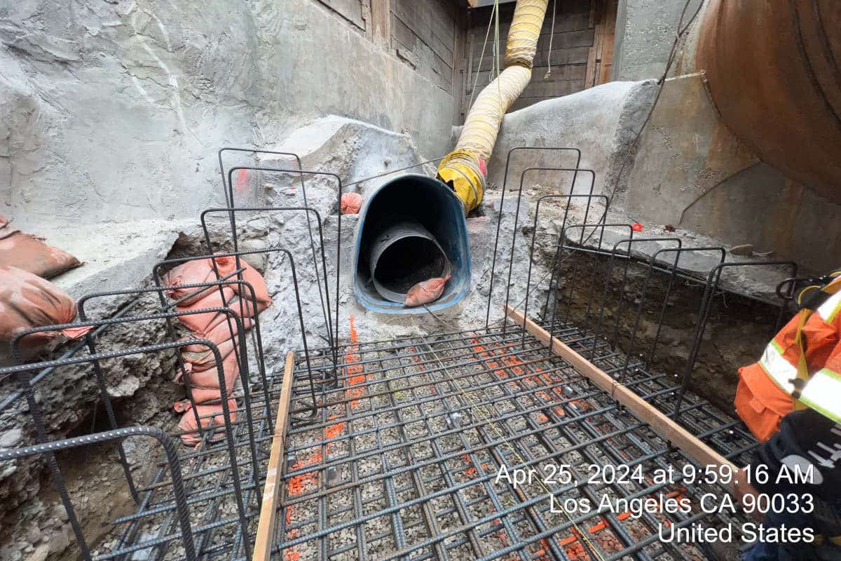 The tight work space, coupled with working adjacent to the active rail and multiple train schedules and being compliance with Southern California Regional Rail Authority regulations required creative solutions by Spiniello to push through. To ensure uninterrupted service, a bypass system was installed the contractor to handle continuous flows.