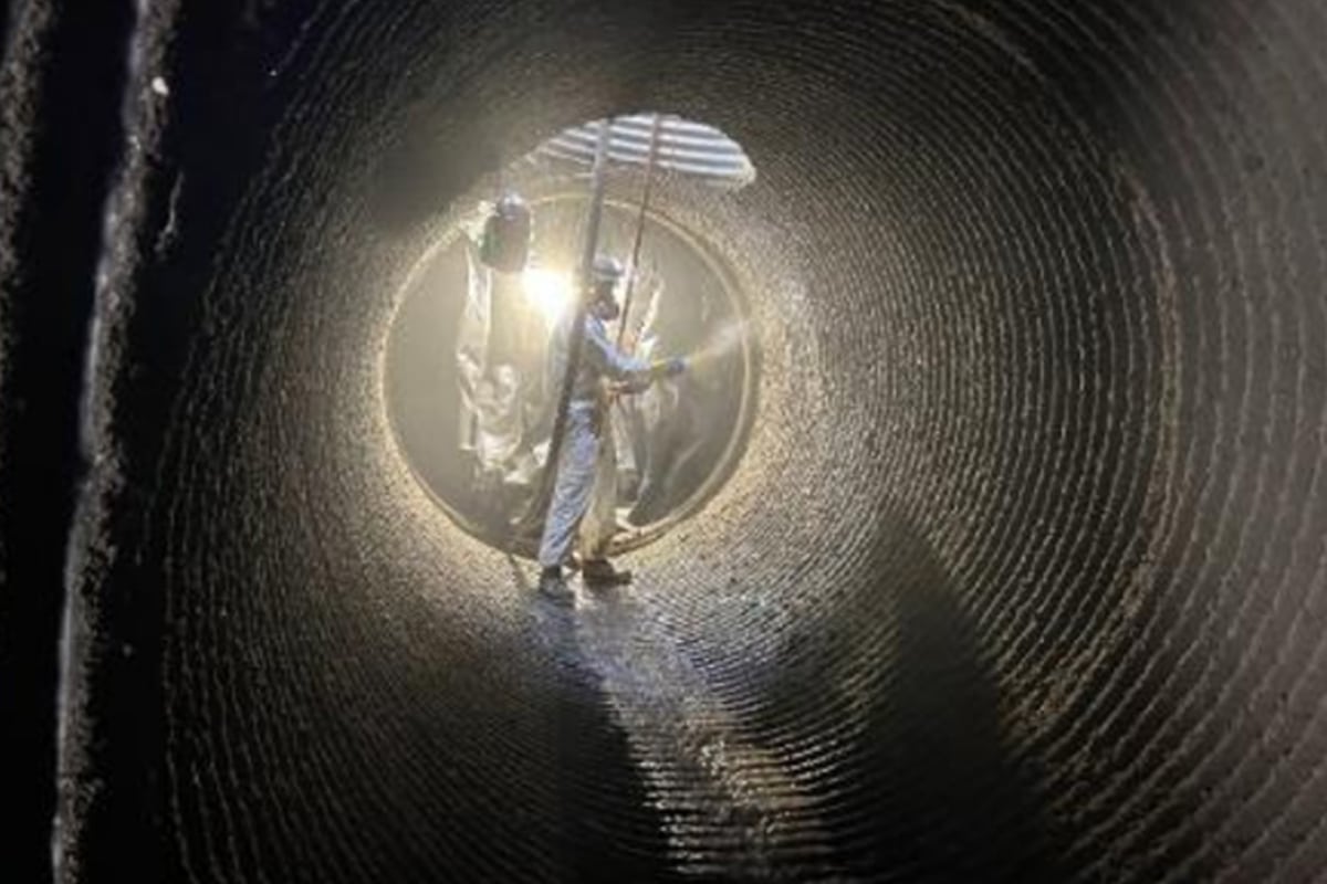 Because fully wet-out liners would exceed transportation limits, Insituform performed on-site wet-out. The dry liner was saturated with resin at the access point and inverted directly into the pipeline using a water inversion and curing method, ensuring uniform pressure and consistent cure temperature.