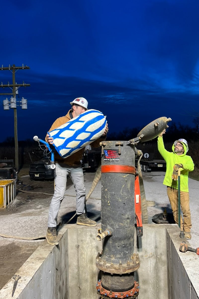 Due to the high demand for water during the day, water pressure to propel the pigs for cleaning the line was not adequate. So, the teams pivoted operations from day hours to nighttime, when the water demands were reduced. Working through the night, the crews used generators. Floodlights were also used. The pigging process was executed without interrupting the city’s water supply.