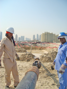 For this second island, Nakheel had to supply services like drinking and irrigation water, telecommunication and sewerage from the Palm. That meant creating three 1,804-ft crossings to the island and, for this, the company decided to use horizontal directional drilling (HDD). This method had already been used to bring services to the main Palm Island. HDD proved to be faster and cheaper than microtunneling, while having less impact on the island, its residents and local wildlife than dredging.