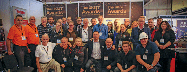 Trenchless Technology publisher Bernie Krzys (front row left) enjoys World Trenchless Day at the UKSTT No-Dig Live show. The show, held every two years, took place on World Trenchless Day.