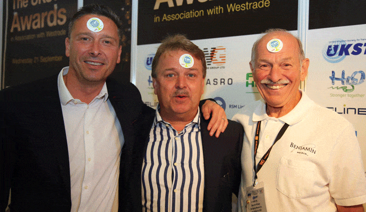 Having fun marking World Trenchless Day at No-Dig Live are (l-r) Westrade’s Paul Harwood, Jan Borje Persson of JBP Consultancy and Trenchless Technology publisher Bernie Krzys.