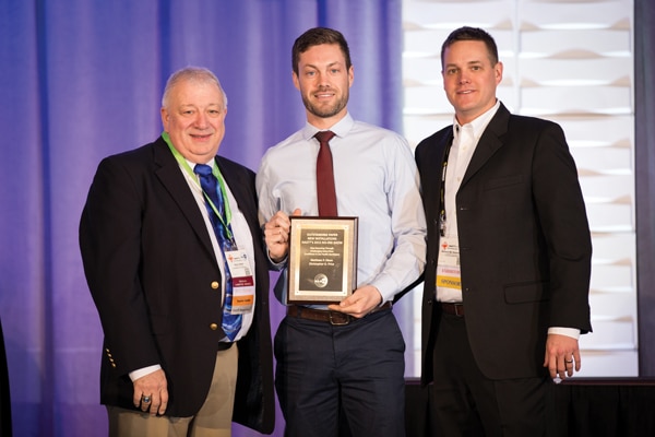 - NASTT board members Dennis Walsh and Bo Botteicher present the 2015 Outstanding paper for New Installations to Matthew P. Olson of Staheli Trenchless.