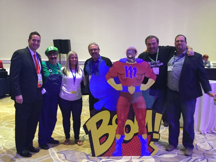 The 2017 NASTT Educational Auction attracted an array of super heroes and villains—all coming together to raise money for a great cause. The 16th annual Educational Fund Auction and Reception, held April 10, brought the 16-year total to more than $1 million. Great villains like The Riddler and The Joker were in the auction house, as well as super heroes such as He-Man, Wonder Woman, and Superman. Special sewer and water heroes also made appearances such as Super Mario (he is a plumber, you know!) and Captain Hydrant.