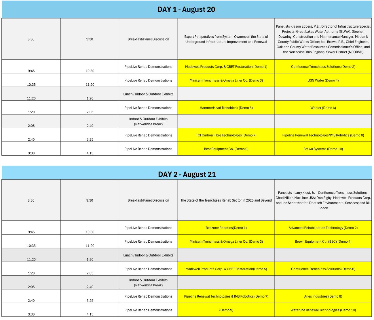 “It’s great that these companies share our vision for a demonstration-focused trenchless rehab event,” says Dan Sisko, Trenchless Ambassador and PipeLive Rehab co-chair. “The entire team at Benjamin Media and at Trenchless Technology magazine look forward to seeing everyone in August.”