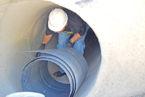 Super laminates significantly reduce the construction time. The flexibility of the laminates allows them to be wrapped around cores that are 12 in. in diameter for ease of transport into pipes through manholes that are typically 24 in. in diameter. The ability of super laminates to conform to the diameter of the pipe is a major time- and money-saving attribute of this system for contractors. Most of the current products on the market that can be used as liners to repair or strengthen pipes have a fixed diameter and cannot be applied to different size pipes.