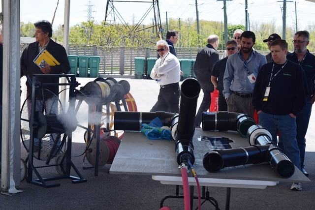 - Attendees look on as Formadrain’s liner cures.